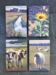 Expositie van landschappen samen met nieuw klein werk uit de omgeving op hout.