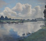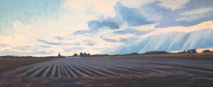 2017Tijdens het schilderen 's avonds langs de Regge (Nieuwebrug), kwamen deze mooie wolken opzetten. Dat zo snel mogelijk proberen te schilderen.
