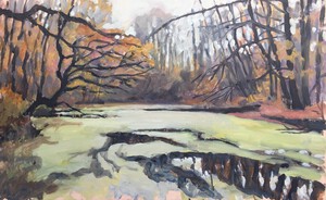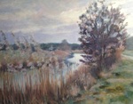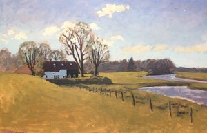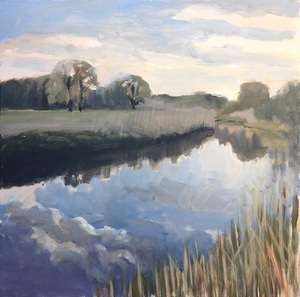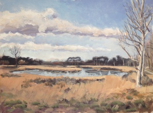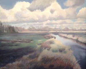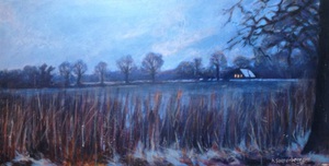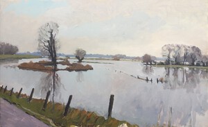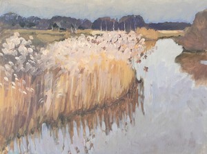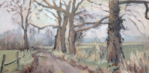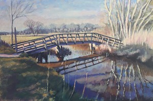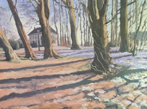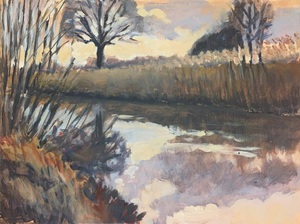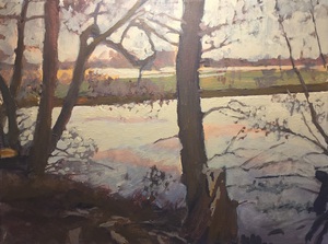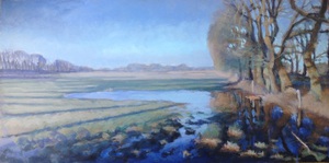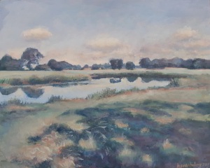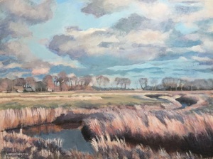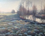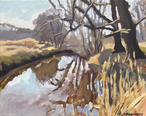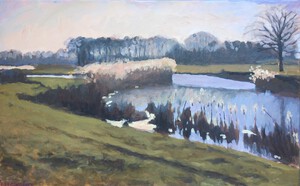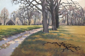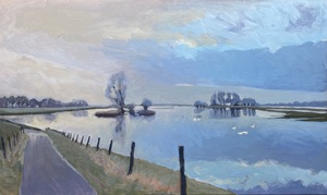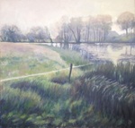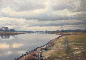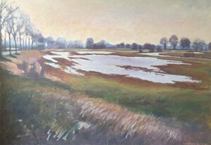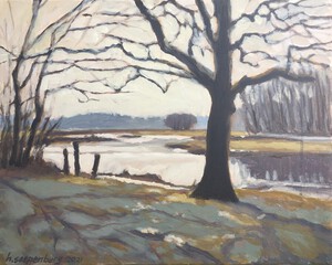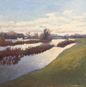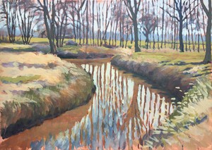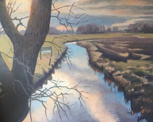 2016Een winters Reestlandschap. Met de kale bomen is het 's winters meer open langs de Reest, maar nooit saai door de kleinschaligheid en afwisseling. De vele grijs tinten in het landschap zijn 's winters ook boeiend om te schilderen.