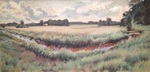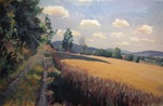 2016Op vakantie 2016 in het Weserbergland met olieverf bij ons huisje dit korenveld geschilderd. Het heldere licht die dag geeft de zomerse gloed op het koren. Mooi om dat met olieverf weer te geven.