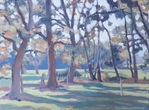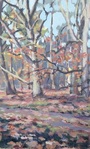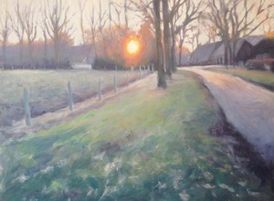 2022De lage zon geeft een intens warme gloed op de bomen in Eerde. Dit moest ik schilderen!