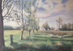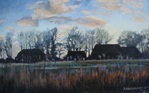 2014Dit is het eerste en kleinere schilderij van de buurtschap Ommerkaneel. Op het grote schilderij heb ik ook het water en de brug erbij geschilderd.