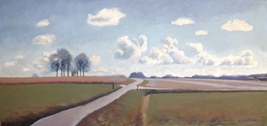 2017Heuvels in de Zuid Eifel, met in de verte zicht op Luxemburg. Ter plekke daar geschilderd met olieverf.