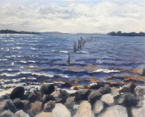 2015Ter plekke gemaakt schilderij op paneel. Ben 3 keer 's avonds teruggegaan om de juiste kleuren te kunnen schilderen.